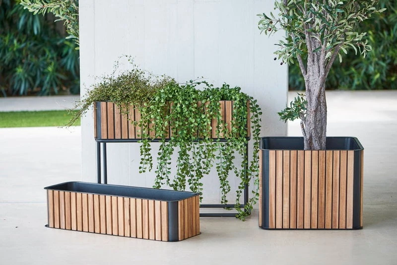 Cane-line’s Combine planter makes you a gardener in an instant! As the name suggests, Combine combines two very different materials: natural teak wood and powder-coated aluminium. Designed particularly for outdoor use, Combine allows you to easily create your own mini garden on the terrace, patio or balcony.