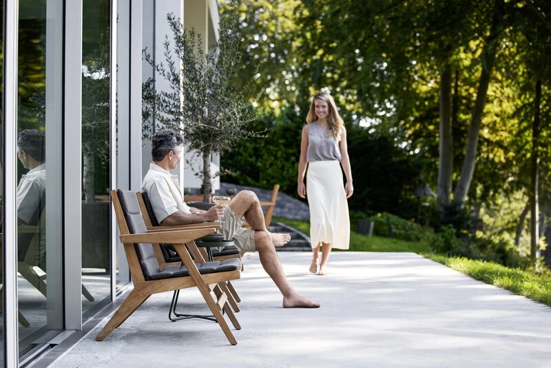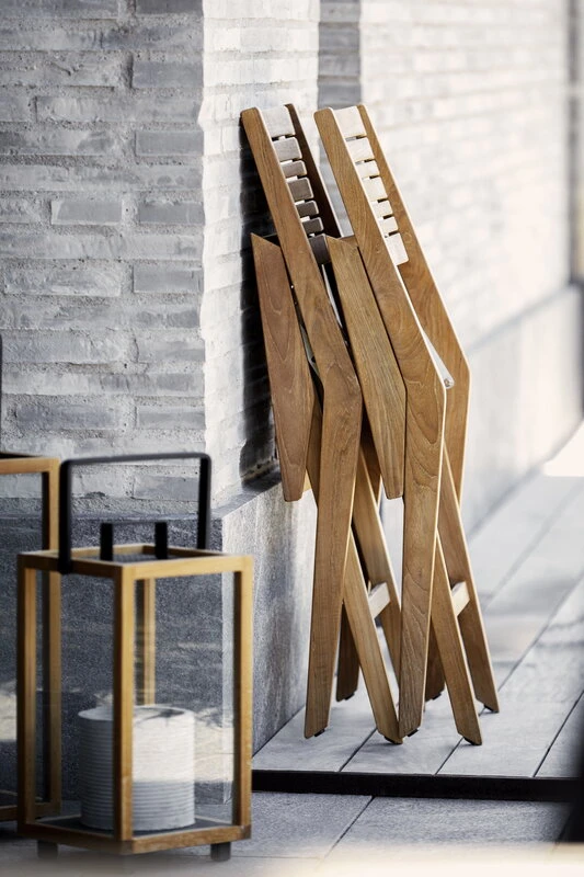 Cane-line’s Flip patio collection is made using the finest teak wood, an ideal material for outdoor use. The Flip series is characterised by a unique design featuring skillfully joined teak slats in various widths. The sustainably produced, certified teak has a beautiful golden brown colour that will develop a silver-grey patina over time. With regular oil treatment, you can maintain the colour closer to the original.