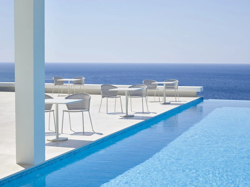 Lean chair by Cane-line brings a characterful touch of modern Danish design into the terrace, balcony or garden. Shaped by design duo Welling/Ludvik, Lean chair consists of a tube frame with a curved backrest and a woven, slightly transparent seat that gives the chair an airy appearance. Polyethylene fiber makes the chair maintenance-free and resistant to UV rays, fade, and weather. The lightweight Lean chairs are stackable and can be stored in small spaces.