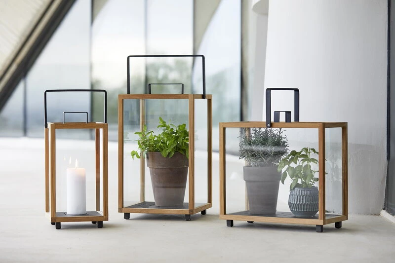 The Lighthouse lantern by Cane-line is the cream of the crop for any terrace or garden setting. Made out of natural teak, powder-coated aluminium and tempered clear glass, the lantern is a safe and elegant way to create a warm atmosphere inside or outdoors. Enjoy Scandinavian design and darkening nights while watching the gentle fire flicker. Besides a lantern, Lighthouse can also be used as a mini greenhouse for herbs, cactuses, and other houseplants.