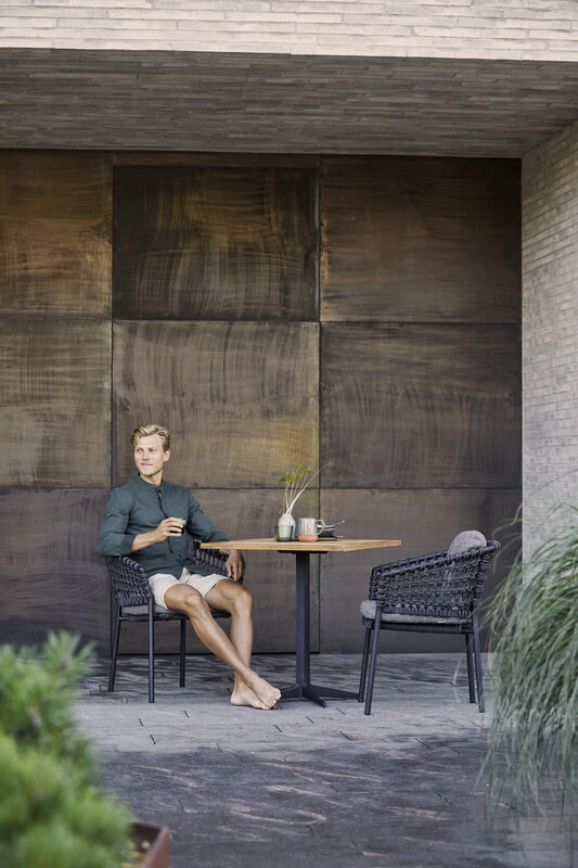 The Cane-line Ocean chair is a charming combination of modern design and traditional craftsmanship: the aluminium frame of the patio chair is decorated with a mesh-like weave, which gives the chair a light and inviting but at the same time distinctive look. What’s more, the chairs are stackable, so they are very easy to put away for the winter and dig up again in spring.