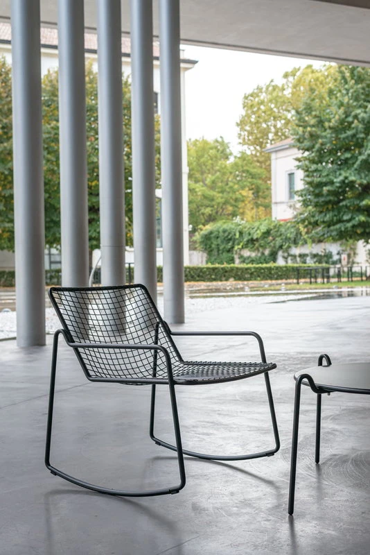 Emu’s Rio swing lounge chair gives the terrace or a living room a sharp edge with its distinctive look. The slightly curved, swinging legs add even further to the comfort of the chair, inviting instant relaxation. Designed by Emanuel Gargano and Anton Cristell the practical rocking chair is crafted from high-quality steel and its modern expression fits all styles effortlessly.