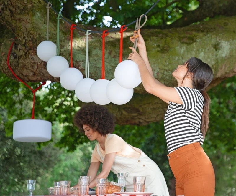 Fatboy’s Bolleke is a fun rechargeable lamp that resembles a large glowing pearl when lit. Suitable for use both indoors and outdoors, the cordless Bolleke lamp is easy to hang on a tree branch from its silicone loop, inspired by hair accessories and sailing equipment. Also, its buttons are made of smooth silicone and located conveniently at the base of the loop. Bolleke features three brightness levels and will provide soft and even light up to 24 hours with a full charge.