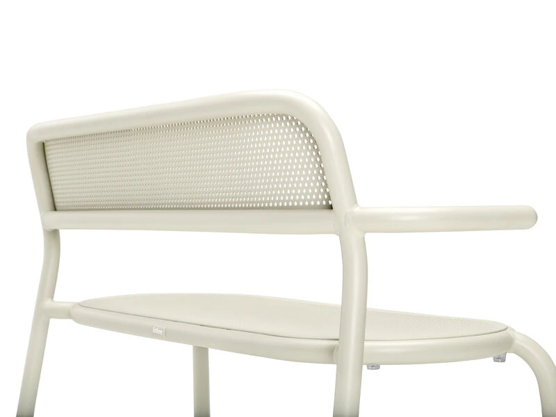 Fatboy’s Toní Bankski garden bench has a fun design that carries a reference both to industrial elements as well as to classical café furniture: the tubular frame bears a resemblance to safety railings, while the perforated seat and backrest evoke images of traditional Viennese chairs.