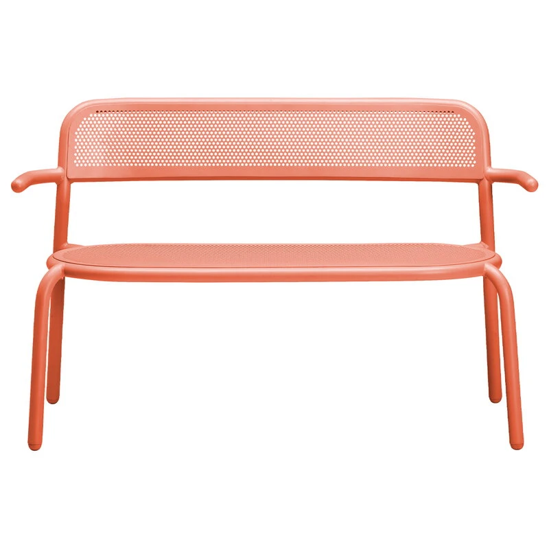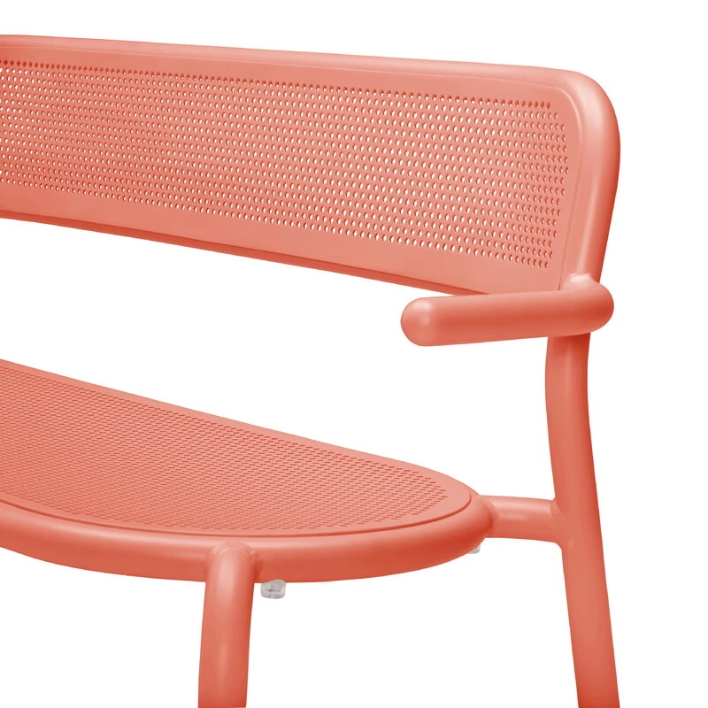 Fatboy’s Toní Bankski garden bench has a fun design that carries a reference both to industrial elements as well as to classical café furniture: the tubular frame bears a resemblance to safety railings, while the perforated seat and backrest evoke images of traditional Viennese chairs.