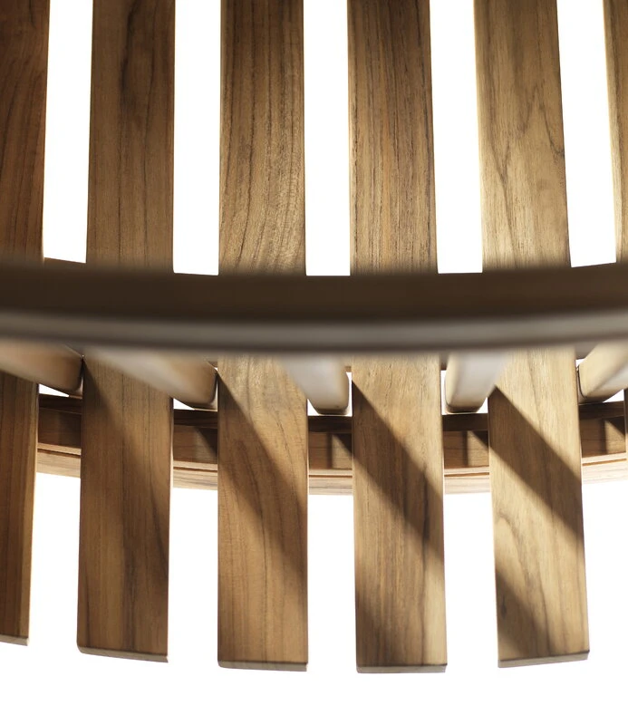 FDB Møbler’s Sammen outdoor furniture exudes both impeccable artisanship and minimalist Nordic elegance, perfectly in line with the traditions of the Danish brand. Designer Thomas E. Alken’s goal was to create a patio furniture set that was just as high quality and stylish as FDB Møbler’s indoor furniture, leading him to choose teak wood as the furniture’s material. The timeless and durable natural material ages beautifully, developing a lovely patina over time, with its golden-brown shade turning into a gorgeous silvery grey – however, the furniture’s original hue can also be maintained by protecting and regularly oiling the furniture. Properly cared for, teak furniture will last from year to year and from decade to decade.