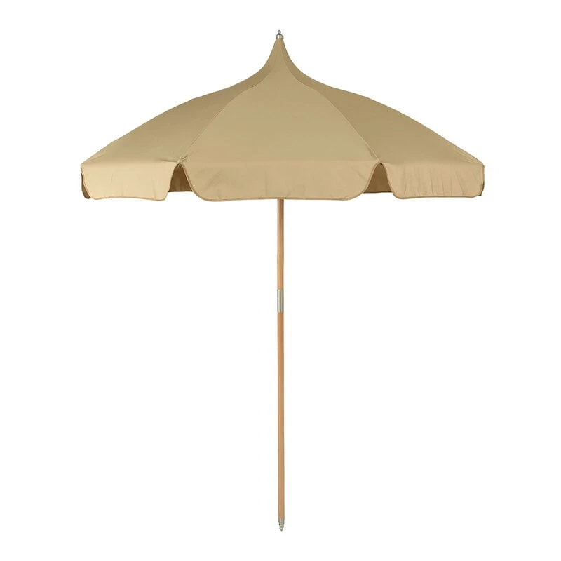 The beechwood stem gives the Lull parasol a sophisticated finish while the aluminium frame makes the shade sturdy but light enough to be moved. The durable polyester fabric protects against both the scorching heat and UV rays and retains its harmonious hue one year after another.