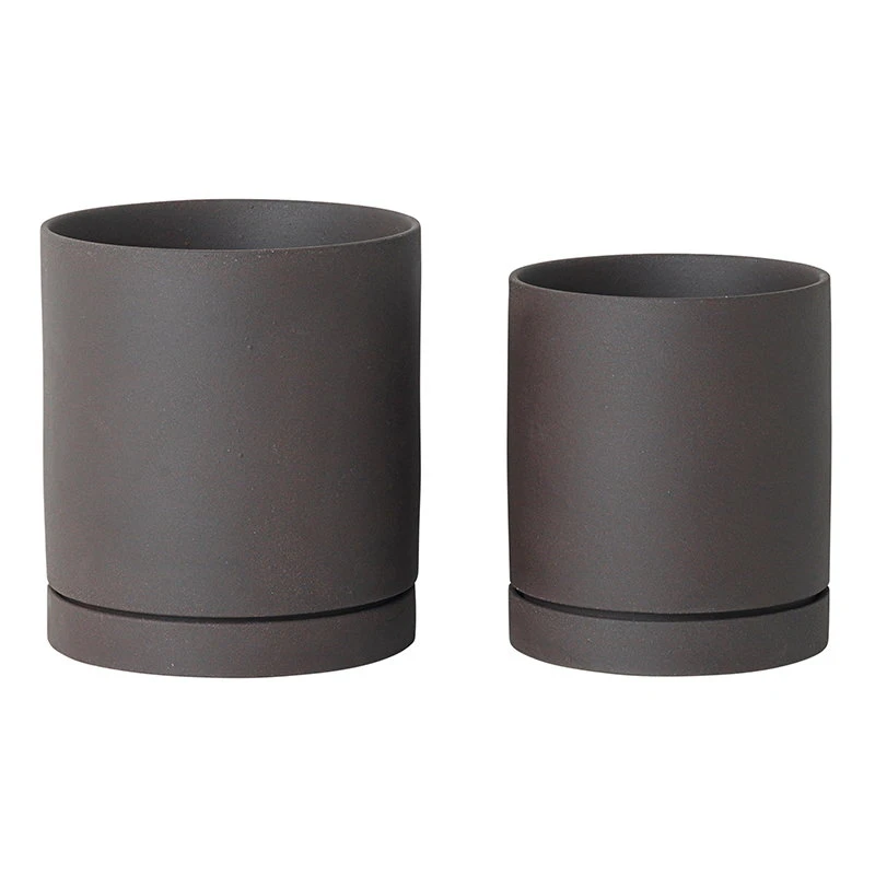 ferm LIVING’s Sekki flower pots renew the ancient traditions of stoneware in a beautiful, minimalist style. The uncoated ceramic pots come with a matching saucer, and they are designed to fit the Plant Stands by ferm LIVING. The earthy tones and different sizes of the Sekki pots combine easily into vivid compositions.