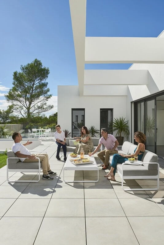 Fermob’s Bellevie sofa offers a comfy spot to sit and relax outdoors, making it the ideal choice for those who like to lounge with a good book and a cup of coffee on the patio or in the garden. The outdoor sofa’s look is dominated by a geometric, but softly rounded form, which makes it suit a variety of decoration styles. The 3-seater sofa is very hard-wearing even at the mercy of fickle weather: its frame is made of light but durable aluminium, while the cushions come upholstered in water-repellent, UV-protected Sunbrella fabric.