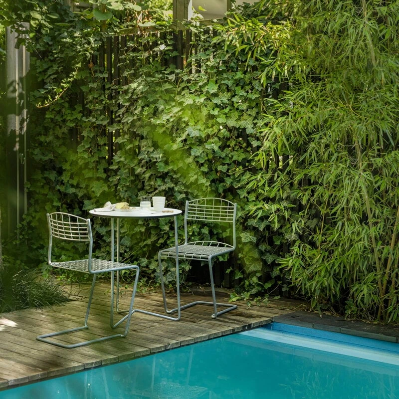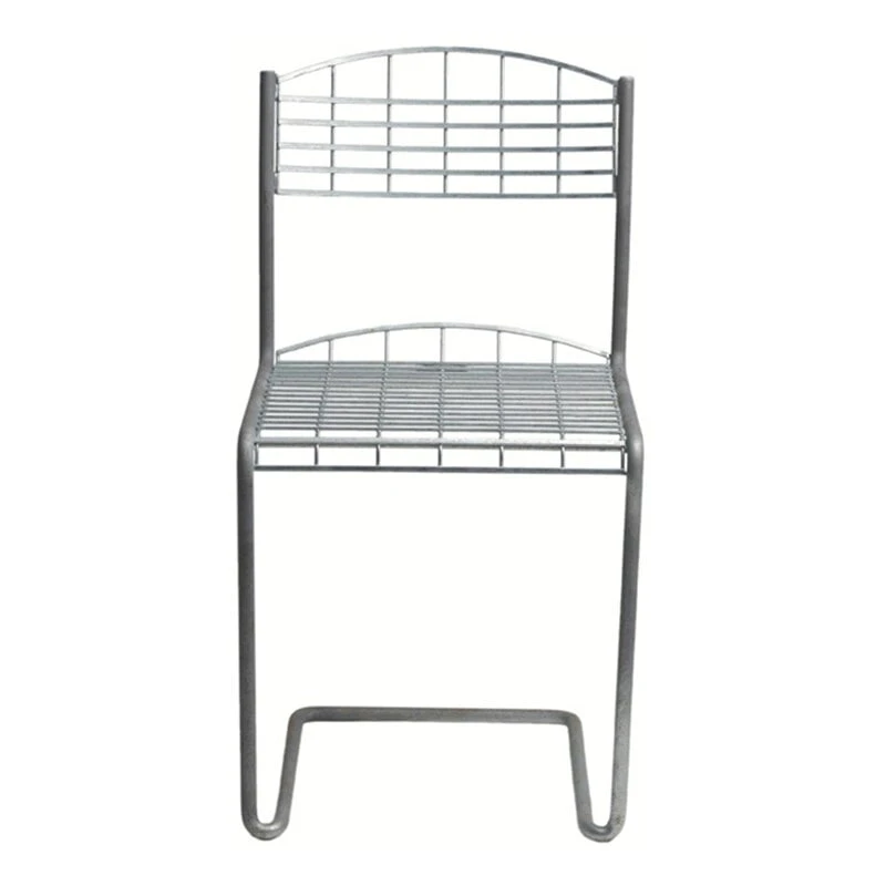Grythyttan Stålmöbler’s High Tech Chair, designed by Nils “Nisse” Strinning, is a minimalist, stackable steel chair suitable for both indoor spaces and outdoor use. The High Tech Chair features a steel wire seat and a slender bent steel tube structure that provides a comfortable, gently rocking seating experience. This distinctive steel base is a recurring feature in many of Grythyttan Stålmöbler’s chairs. Over time, the galvanized steel parts will acquire a matte surface.