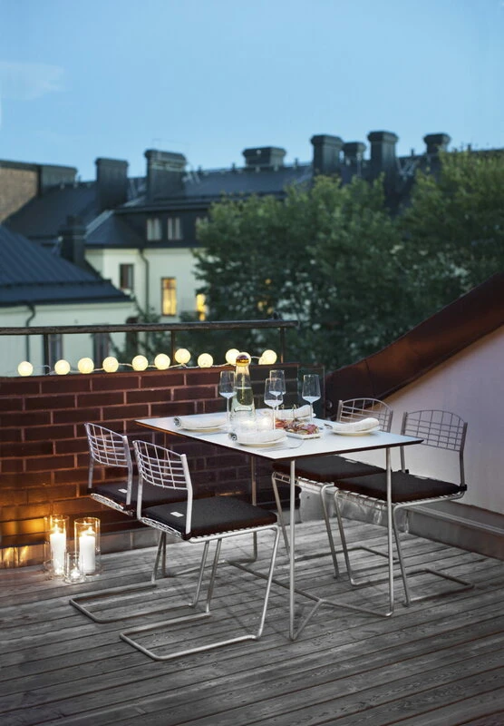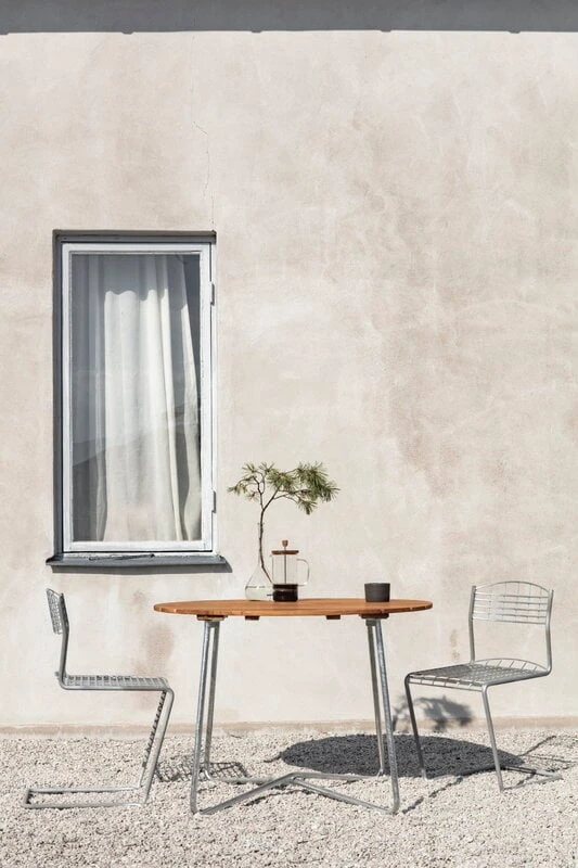 Launched in 1984, the High Tech Chair is part of Nisse Strinning’s furniture collection that draws inspiration from the traditions of futuristic and industrial design. The hardwearing steel structure has made the High Tech collection especially popular in outdoor use, but the pieces have later gained popularity in indoor spaces as well. The products are made at Grythyttan Stålmöbler’s factory in Sweden.