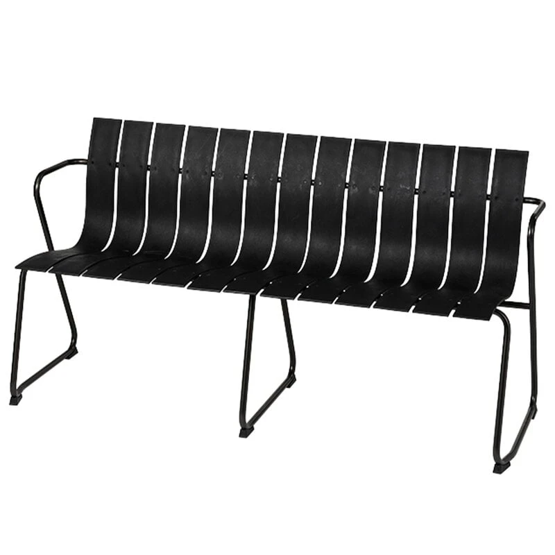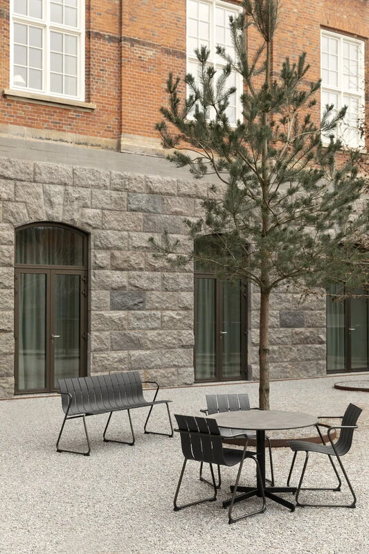 The Ocean garden bench by the Danish Mater is a reinterpretation of the outdoor furniture range designed by Nanna & Jørgen Ditzel in 1955. Besides the exceptionally harmonious form, also the materials make the Ocean range very unique: the collection has been made using ocean waste plastic and recycled fishnets. The seats and tabletops are formed by strong plastic slats, and the airy design is complemented by grey-coated metal frames. All the components are recyclable. The Ocean collection received the Wallpaper* design award in 2019.