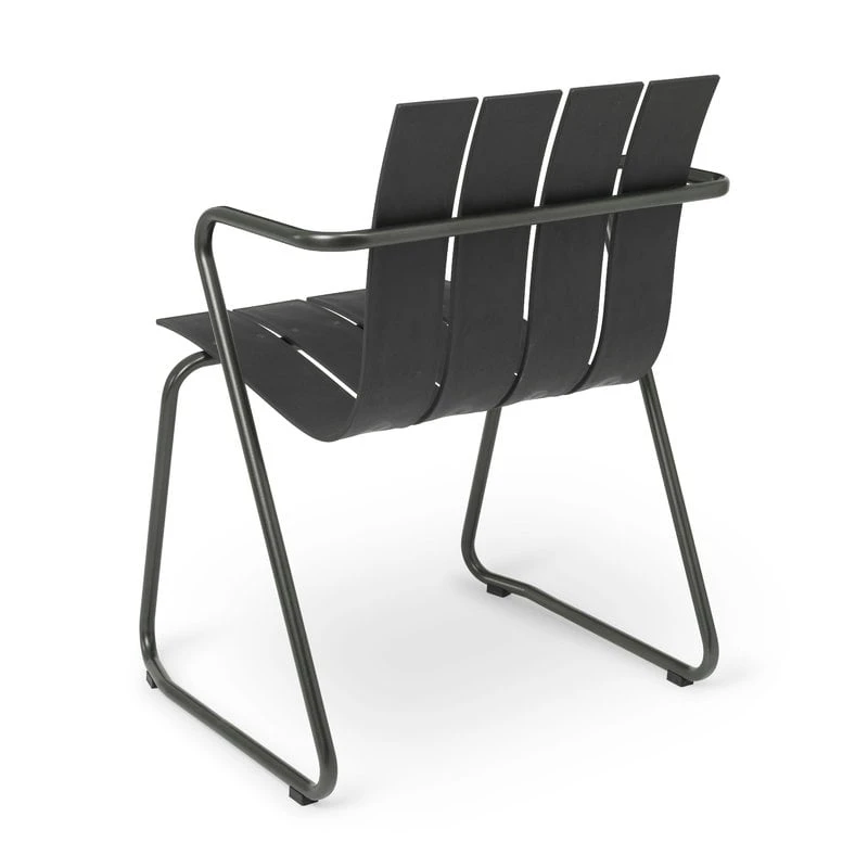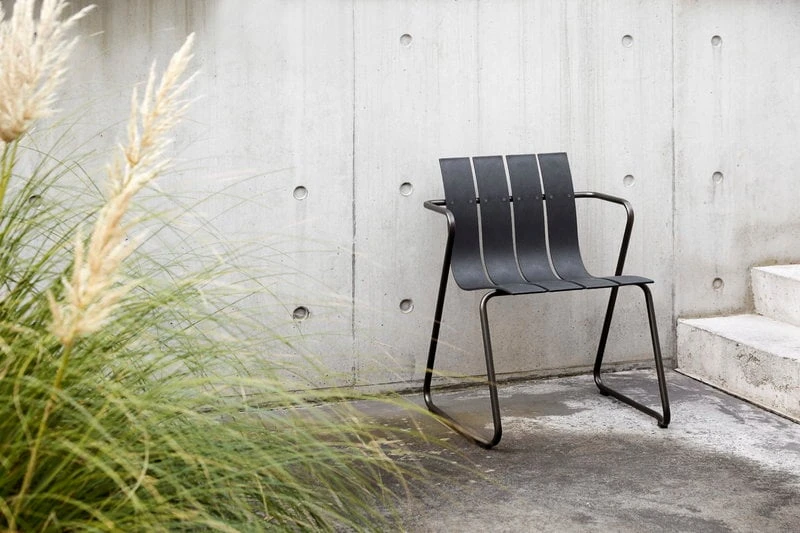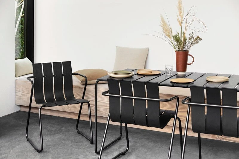 The Ocean patio chair by the Danish Mater is a reinterpretation of the outdoor furniture range designed by Nanna & Jørgen Ditzel in 1955. Besides the exceptionally harmonious form, also the materials make the Ocean range very unique: the collection has been made using ocean waste plastic and recycled fishnets. The seats and tabletops are formed by strong plastic slats, and the airy design is complemented by grey-coated metal frames. All the components are recyclable. The Ocean collection received the Wallpaper* design award in 2019.