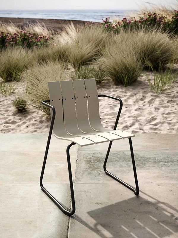 The Ocean patio chair by the Danish Mater is a reinterpretation of the outdoor furniture range designed by Nanna & Jørgen Ditzel in 1955. Besides the exceptionally harmonious form, also the materials make the Ocean range very unique: the collection has been made using ocean waste plastic and recycled fishnets. The seats and tabletops are formed by strong plastic slats, and the airy design is complemented by grey-coated metal frames. All the components are recyclable. The Ocean collection received the Wallpaper* design award in 2019.