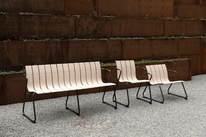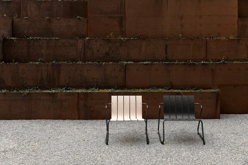 The Ocean lounge chair by the Danish Mater is a reinterpretation of the outdoor furniture range designed by Nanna & Jørgen Ditzel in 1955. Besides the exceptionally harmonious form, also the materials make the Ocean range very unique: the collection has been made using ocean waste plastic and recycled fishnets. The seats and tabletops are formed by strong plastic slats, and the airy design is complemented by grey-coated metal frames. All the components are recyclable. The Ocean collection received the Wallpaper* design award in 2019.