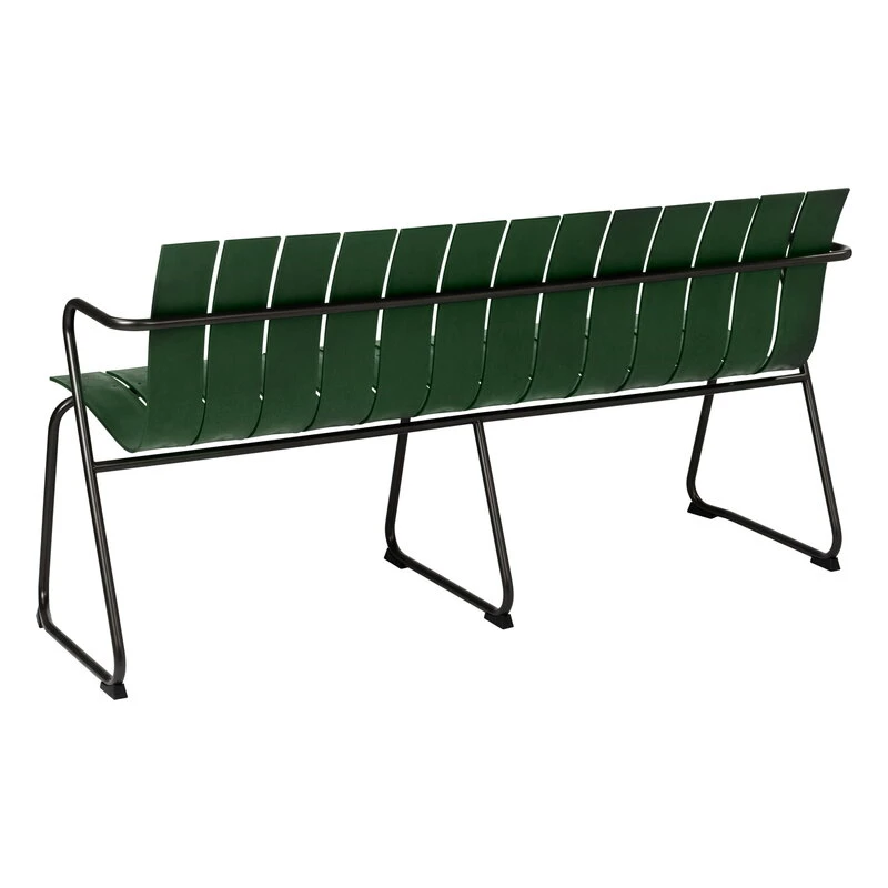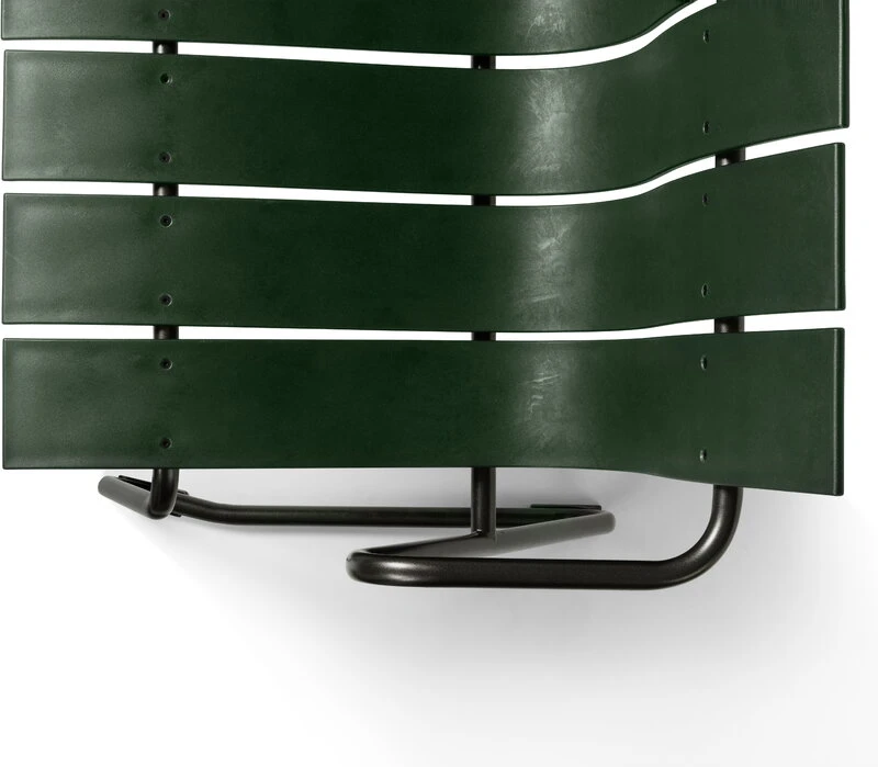 The Ocean OC2 bench by Danish brand Mater is a part of its award-winning Ocean collection – a reinterpretation of the outdoor furniture range designed by Nanna & Jørgen Ditzel in 1955. Besides the exceptionally harmonious form, the materials also make the Ocean OC2 range very unique: the collection has been made using recycled plastic beer kegs in collaboration with Danish beer manufacturer Carlsberg. The seats and tabletops are formed by strong plastic slats, featuring the familiar dark green hue, and the airy design is complemented by a metal frame with a gunmetal finish. All the components are recyclable.