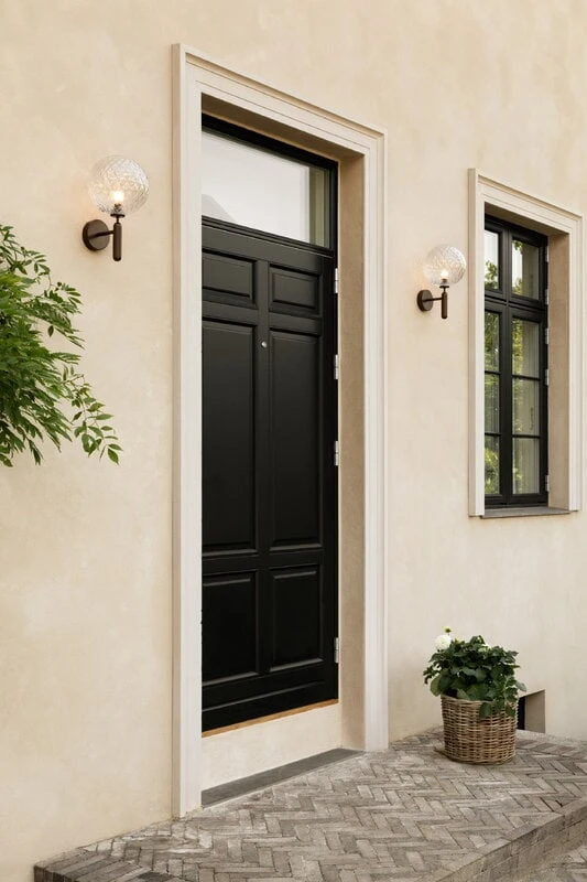 The Miira Outdoor wall lamp by the Danish brand Nuura catches the eye with a beautifully shaped embossed glass dome that casts an atmospheric light, with the elegant metal base adding a considered contrast to the design. The weatherproof Miira Outdoor wall lamp has been designed particularly for outdoor areas, such as doorways and facades.