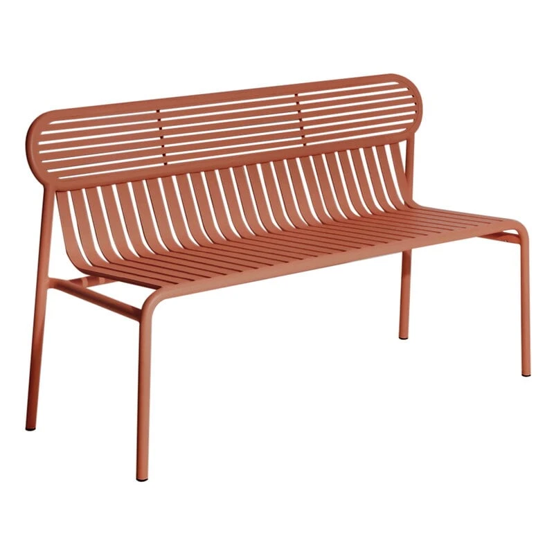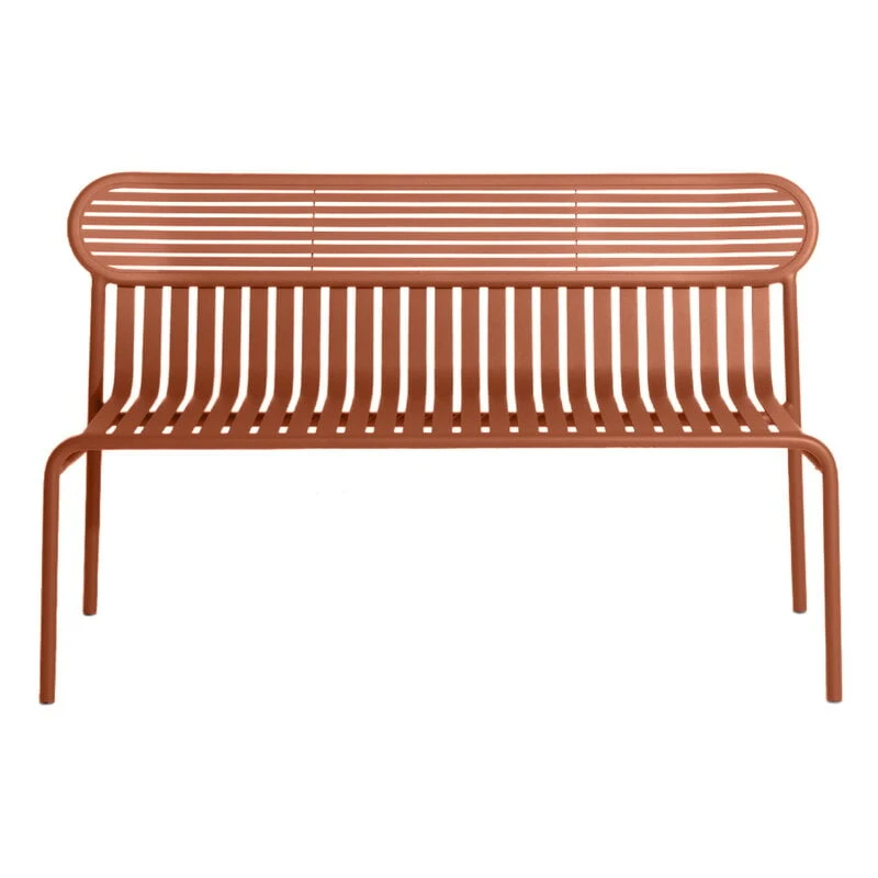 The Week-end bench is part of Petite Friture’s collection of aluminium outdoor furniture. The Week-end bench is characterized by oval shapes and both horizontal and vertical slats on the backrest. The bench goes beautifully together with the tables of the Week-end collection.