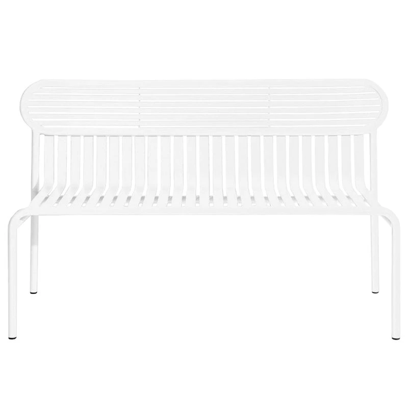 The Week-end bench is part of Petite Friture’s collection of aluminium outdoor furniture. The Week-end bench is characterized by oval shapes and both horizontal and vertical slats on the backrest. The bench goes beautifully together with the tables of the Week-end collection.