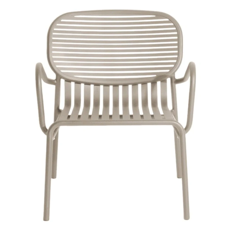 The Week-end lounge chair is part of Petite Friture’s collection of aluminium outdoor furniture. The Week-end armchair is characterized by oval shapes and both horizontal and vertical slats on the backrest. All the chairs of the Week-end range are stackable.