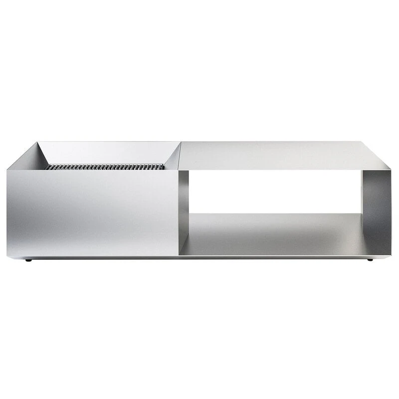 The Brazier fire pit by Röshults invites you to get together and enjoy an open fire in your own yard, safely and elegantly. Made of brushed stainless steel, the Brazier fire pit has a capacious space with a grate for burning wood and barbecuing. Its other end provides storage space for firewood, while the top serves as a low table for placing your drinks and snacks.