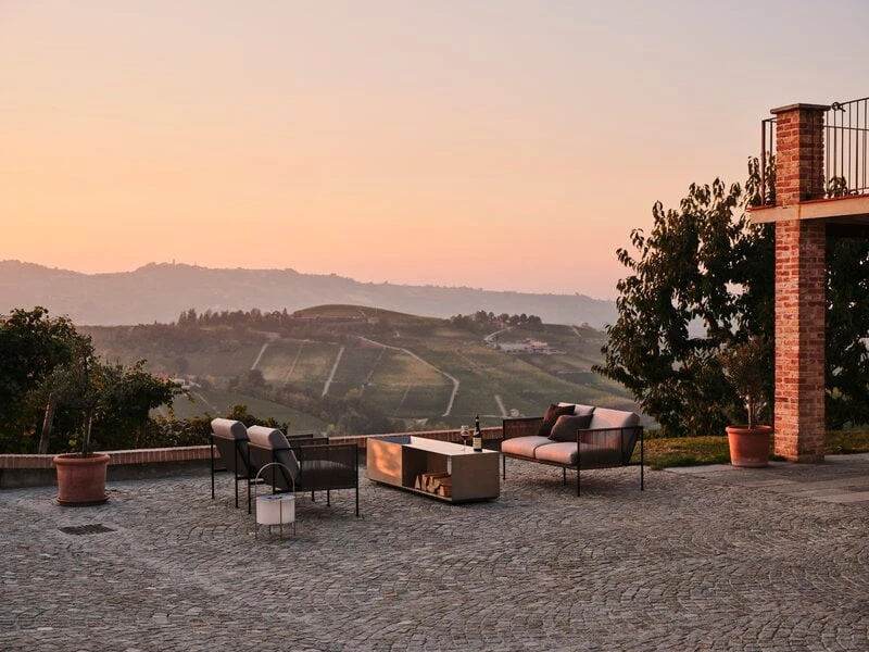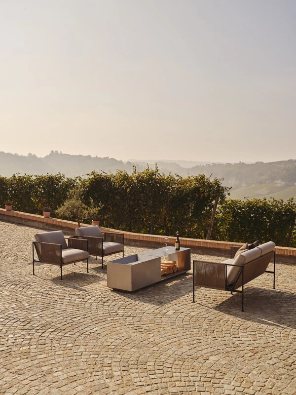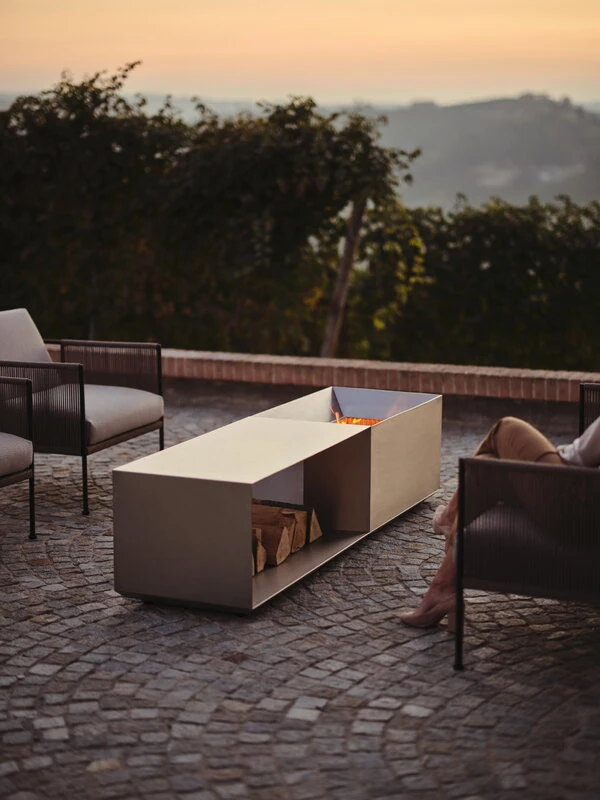 The luxurious, angular design of the Brazier fire pit was created by the Stockholm-based duo Broberg & Ridderstråle.