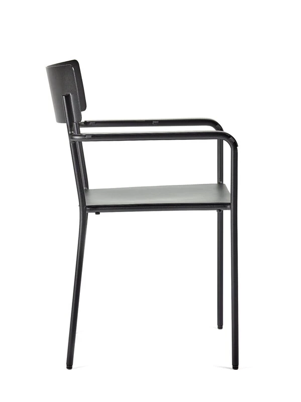 The August armchair by Serax is made of powder-coated aluminium, and it is suitable for both indoor and outdoor use. The compact, relatively high armchair is just as at home out in the garden or on the patio as it is next to a dining table or desk indoors.