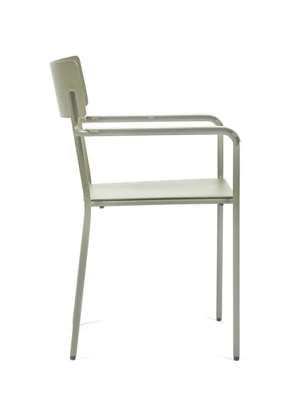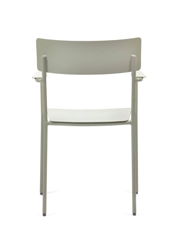 The August armchair by Serax is made of powder-coated aluminium, and it is suitable for both indoor and outdoor use. The compact, relatively high armchair is just as at home out in the garden or on the patio as it is next to a dining table or desk indoors.