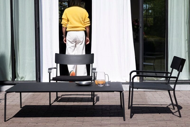 The August armchair by Serax is made of powder-coated aluminium, and it is suitable for both indoor and outdoor use. The wider, relatively low armchair is just as at home out in the garden or on the patio as it is next to a dining table or desk indoors.