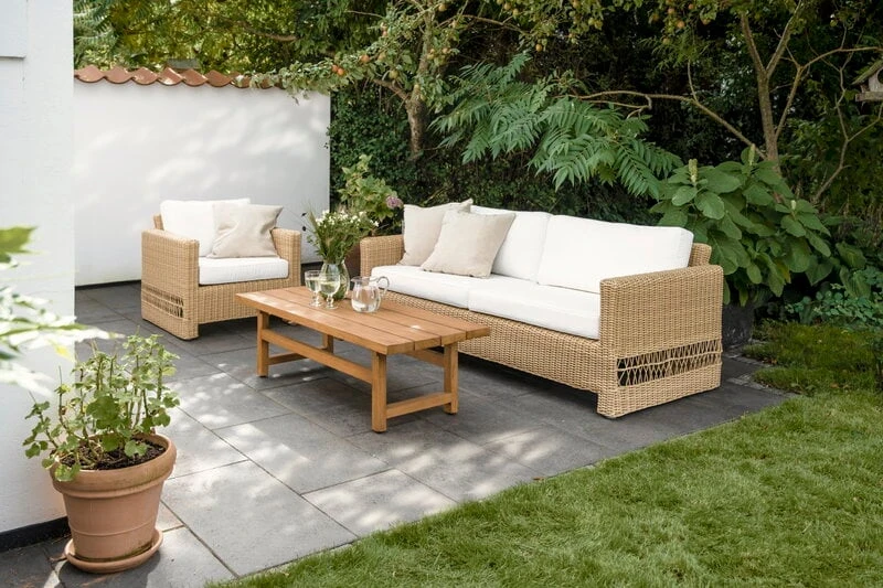 The Carrie sofa is part of Sika-Design’s Georgia Garden collection, which has been inspired by the aesthetics of the British colonial style and classic Danish wicker furniture. The Alu-Rattan aluminium and synthetic ArtFibre weave give the furniture a rattan-like look and make them maintenance-free and suited for any weather conditions. Thanks to the durable materials and timeless look, the Georgia Garden collection serves equally well in private gardens as well as in public outdoor spaces.