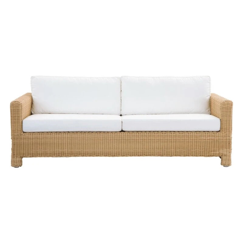 Sika-Design’s Carrie sofa is an outdoor 3-seater sofa boasting a sturdy, angular frame with a decorative weave made from synthetic rattan. The seat cushions are designed for outdoor use and feature removable, machine-washable covers.
