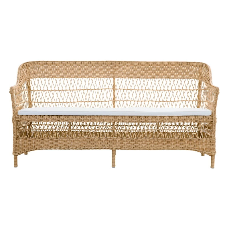 Sika-Design’s Charlot sofa is an outdoor 3-seater sofa boasting a high backrest with a simple, airy weave made from synthetic rattan. The seat cushions are designed for outdoor use and feature removable, machine-washable covers.