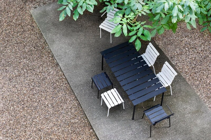 The seemingly simple look of the Aligned dining table by valerie objects takes you by surprise: the asymmetrical slats made of tough aluminium give the understated garden table a whole new kind of personality. A true Maarten Baas design to the core, the imaginative and playful Aligned table has been meticulously created based on the Dutch designer’s pencil drawing. The beautiful and durable outdoor dining table is a delightful addition to both the garden and the terrace of the summer house – and will surely bring a smile to your face one year after another.