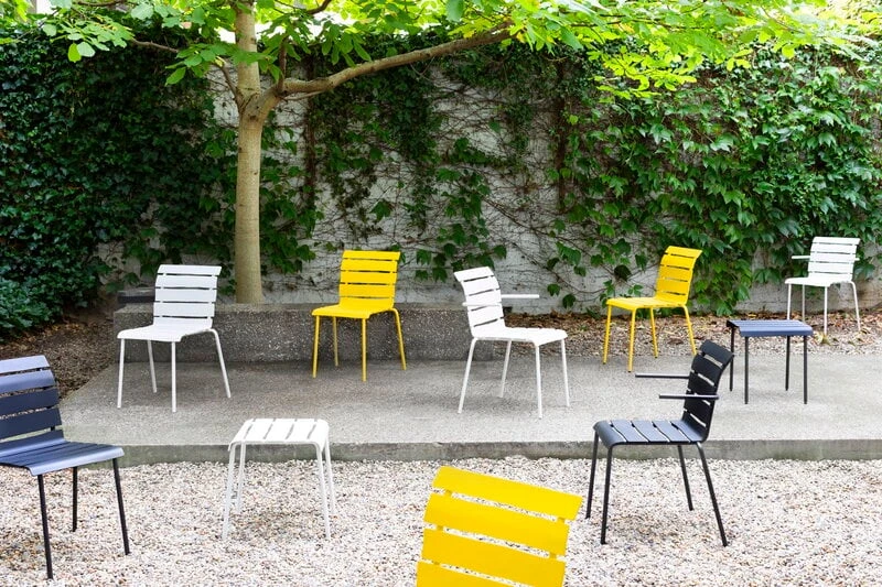 The seemingly simple look of the Aligned stool by valerie objects takes you by surprise: the asymmetrical slats made of tough aluminium give the understated garden stool a whole new kind of personality. A true Maarten Baas design to the core, the imaginative and playful Aligned stool has been meticulously created based on the Dutch designer’s pencil drawing. The beautiful and durable stool can be used as an extra seat or a convenient side table – both indoors and out. A delightful addition to both the garden and the terrace of the summer house, the Aligned outdoor stool will surely bring a smile to your face year after another.